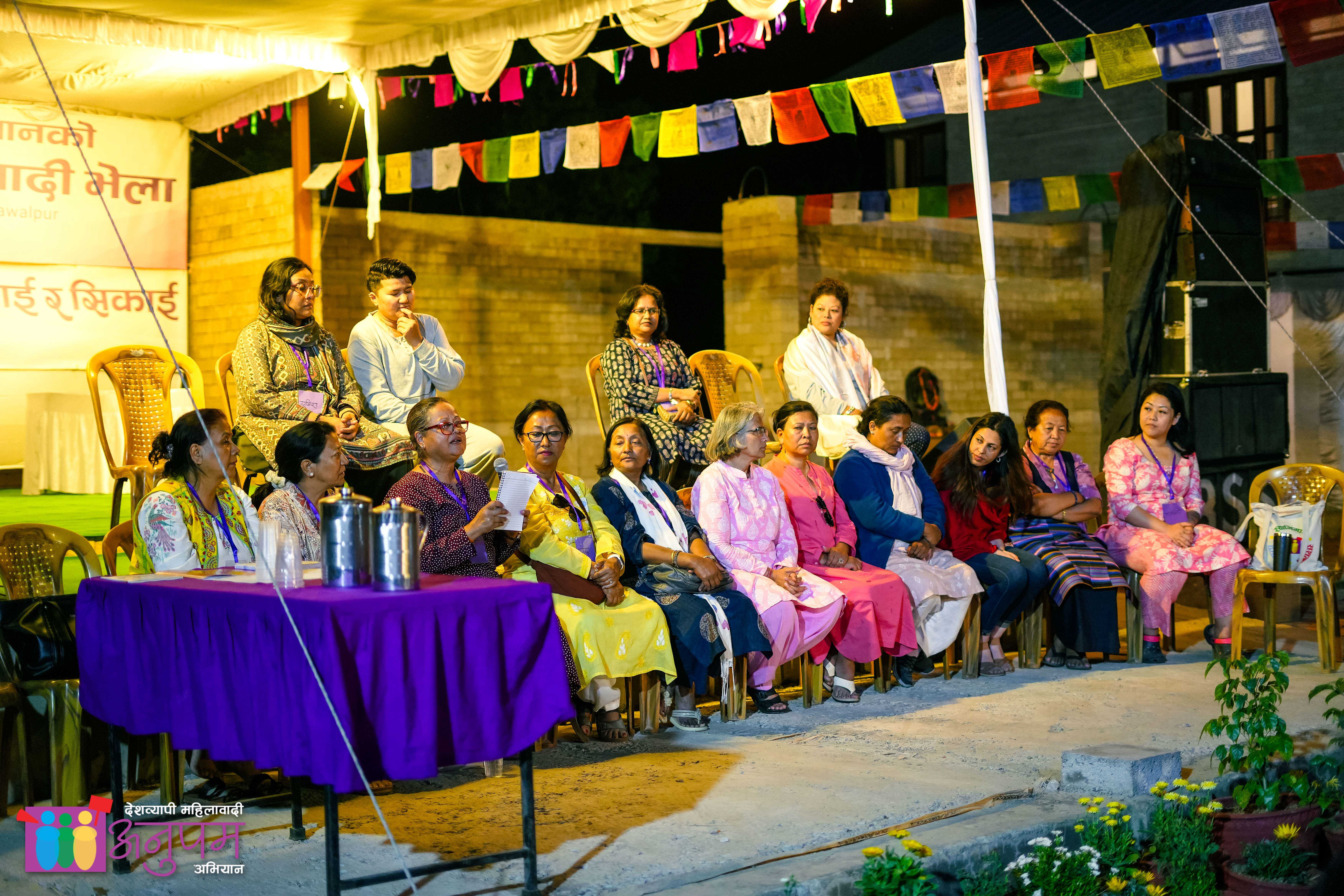 The second year of Anupam Abhiyan, known as the Year of Yatras, kicked off with a grand East-West Yatra—a journey from Mechi to Mahakali—followed by 236 yatras across all 77 districts of Nepal. This phase concluded with the Padmalaya AA Convening held in Sehari, Nawalpur district, marking the transition to the third year of the movement. Over 520 participants from 48 districts attended, representing women, men, trans men, trans women, lesbians, disabled individuals, caste-based minority groups, and guests from organizations like UN Women, KURVE Wustrow, Tewa, Nagarik Aawaj, Kalam and Ukaalo.